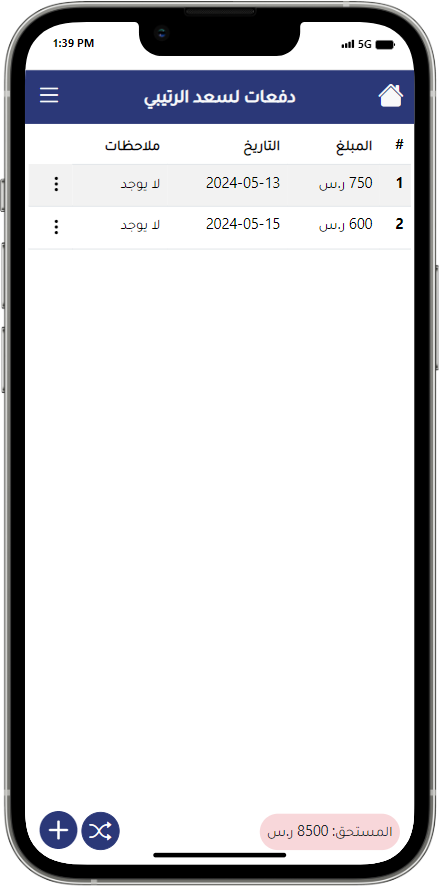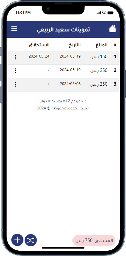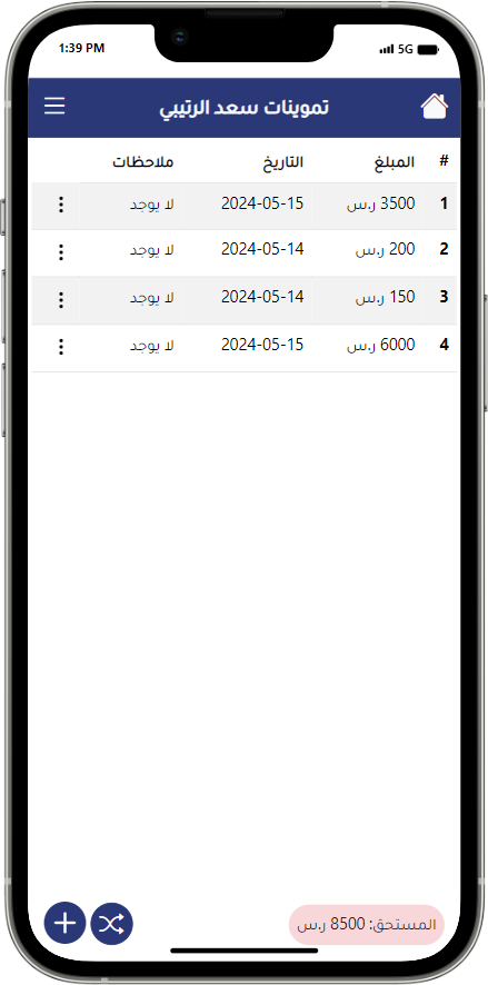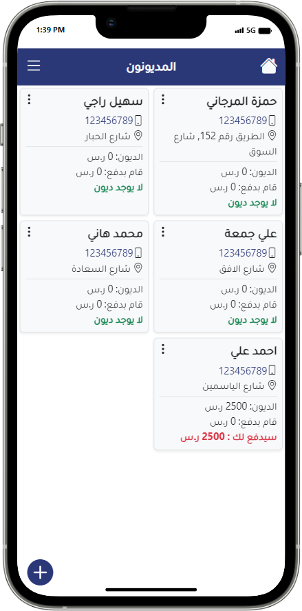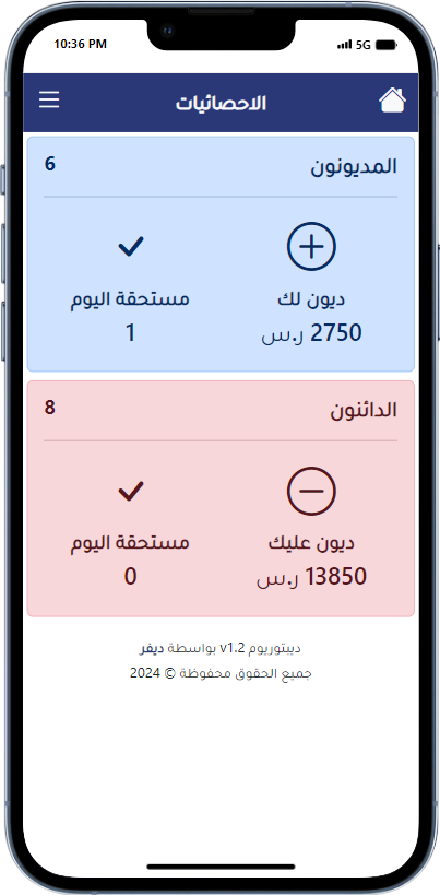 يتيح لك تطبيق إدارة الديون تحسين كفاءتك المالية من خلال تتبع دقيق وإدارة فعالة للديون والدائنين.