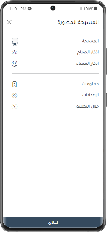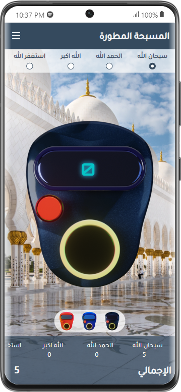تطبيق أذكار متقدم يحتوى على عدة أنواع تسبيح بتصميم قابل للتخصيص ولوحة تحكم.