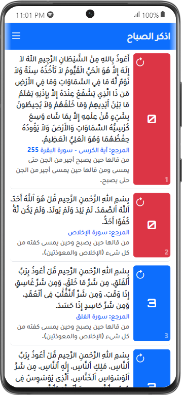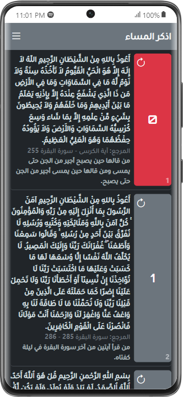 وتم دمج أذكار الصباح والمساء معها أيضا بشكل جميل وأنيق.
